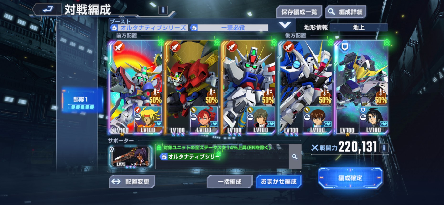 サポに合わせて微妙な機体いれるぐらいなら思い切ってオルタナ14%にして凸の進んだUR機体で固めた方が良い気がするわ